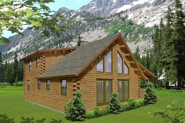 Embrace the charm and warmth of the Ozark cedar log home, a 1,360 sq. ft. cedar log home package featuring a distinctive dual-pitch roof and a spacious loft for relaxation or additional sleeping space. With three bedrooms and two bathrooms, including an expansive loft bedroom with its private bath, this cozy cabin delivers both comfort and style.